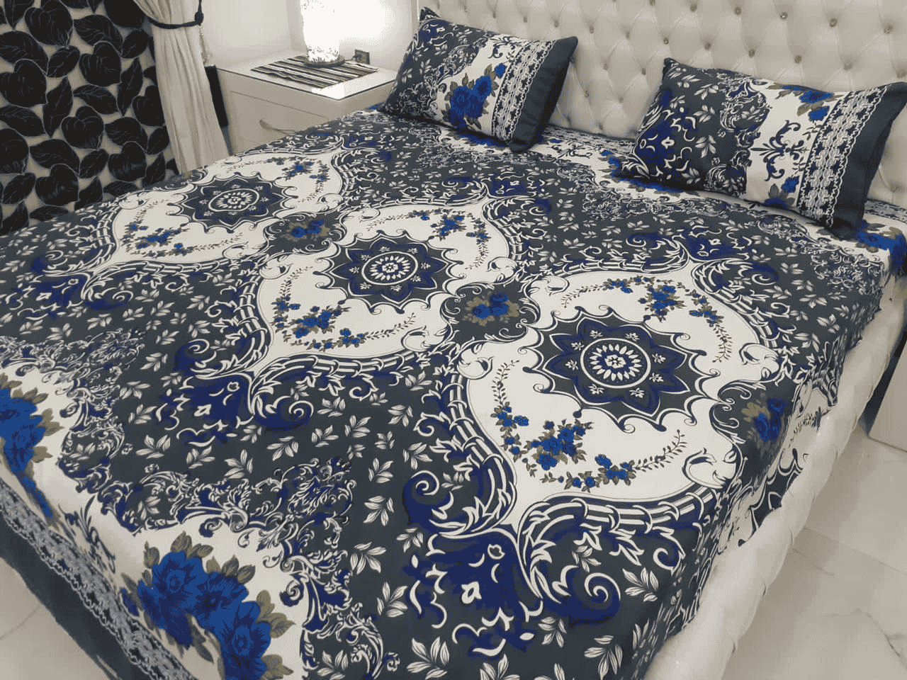 Available as 3D Leather Cotton Crystal Bed Sheets – King Size, soft and durable with 100% lifetime guarantee of color & fabric. Includes 1 flap sheet and 2 pillow covers. For sale online in Faisalabad, Lahore, Karachi, Islamabad and all Pakistan. ✅ Cash on Delivery ✅ Fast Shipping.