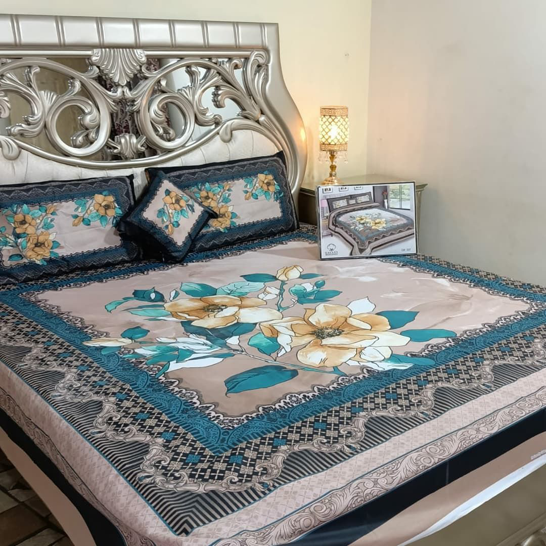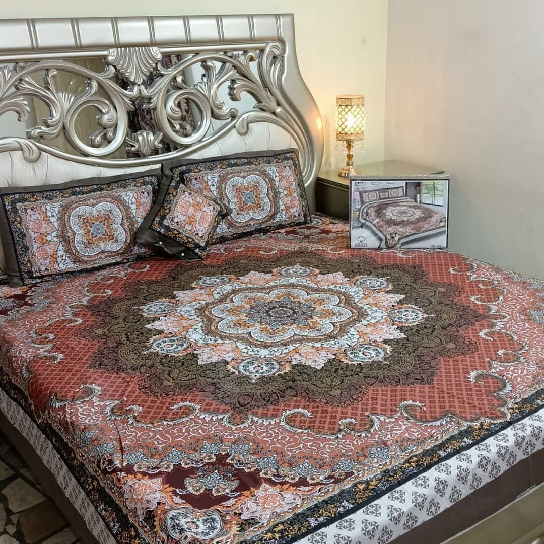 Available as 3D Leather Cotton Crystal Bed Sheets – King Size, soft and durable with 100% lifetime guarantee of color & fabric. Includes 1 flap sheet and 2 pillow covers. For sale online in Faisalabad, Lahore, Karachi, Islamabad and all Pakistan. ✅ Cash on Delivery ✅ Fast Shipping.