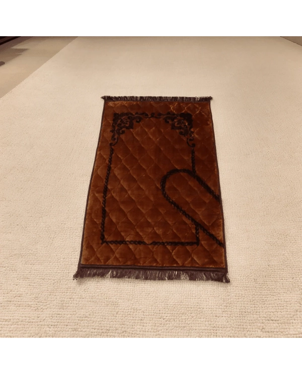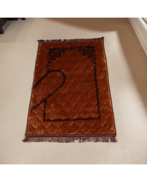 Featuring deep embossing and cloudy texture, this prayer mat adds elegance and comfort to your prayer space. Measuring 80 cm × 120 cm and in a soothing Amber color, it is perfect for home use or gifting. Durable, soft, and stylish, this mat brings both luxury and practicality to your daily rituals.”